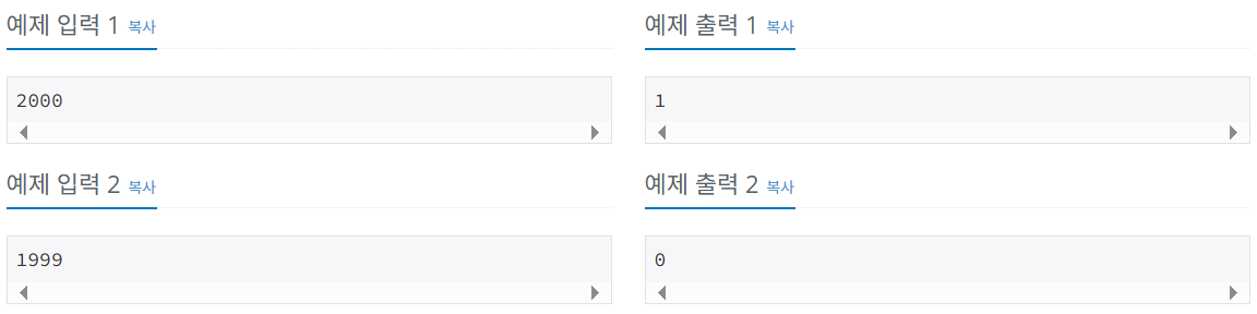 연도가 주어졌을 때, 윤년이면 1, 아니면 0을 출력하는 프로그램을 작성하시오.