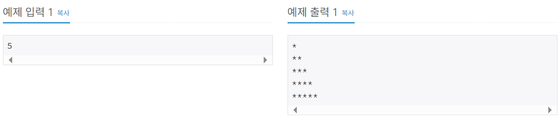 첫째 줄에는 별 1개, 둘째 줄에는 별 2개, N번째 줄에는 별 N개를 찍는 문제