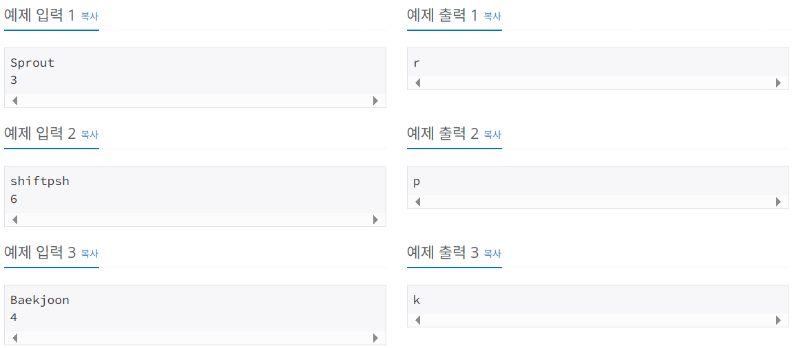단어 S와 정수 i가 주어졌을 때, S의 i번째 글자를 출력하는 프로그램을 작성하시오.
